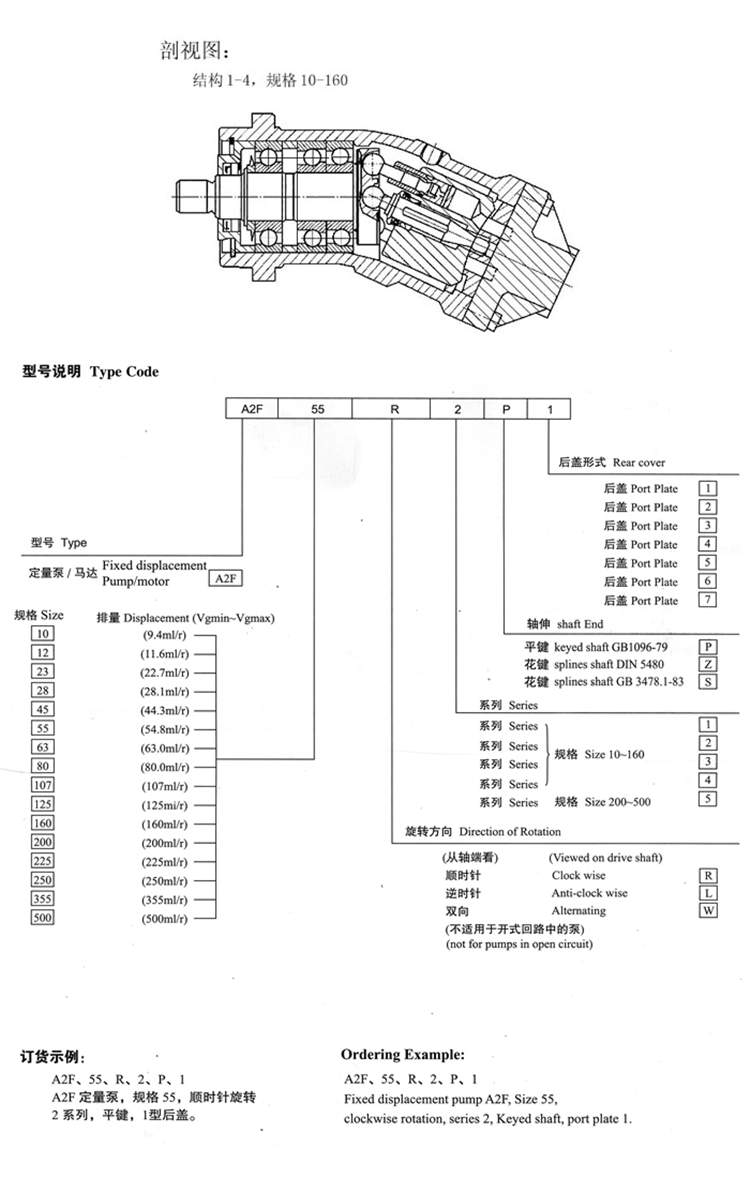A2F 柱塞泵 160排量規(guī)格產(chǎn)品主要型號如下: