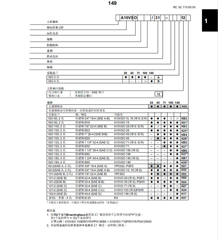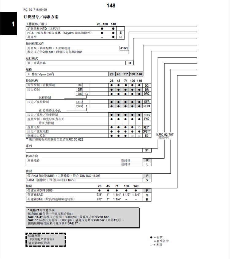 力士樂變量柱塞泵A10VSO100DR/31R-PPA12N00型號說明